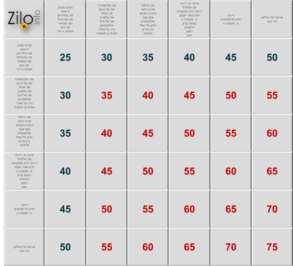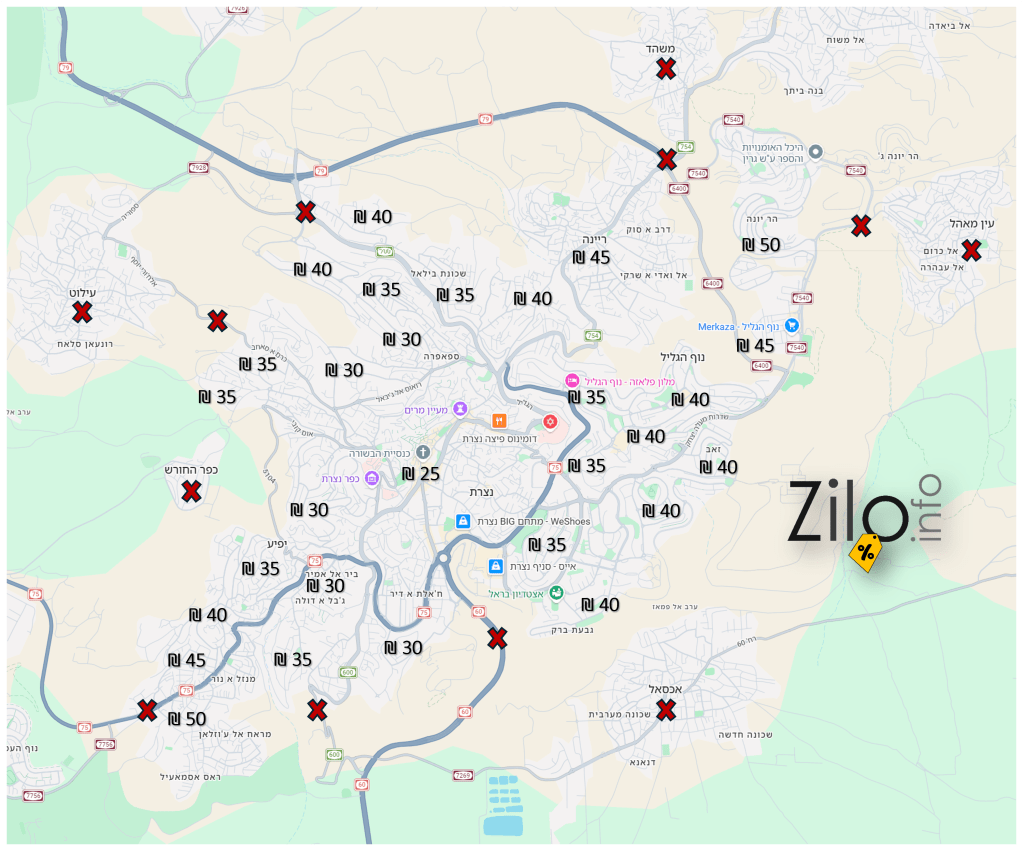 מחיר משלוח בודד לפי שכונות